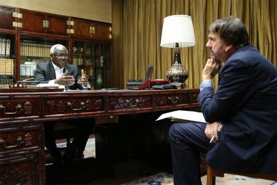 2016年,時(shí)任塞拉利昂總統(tǒng)科羅馬接受穆迪采訪。(攝影:王壯飛)