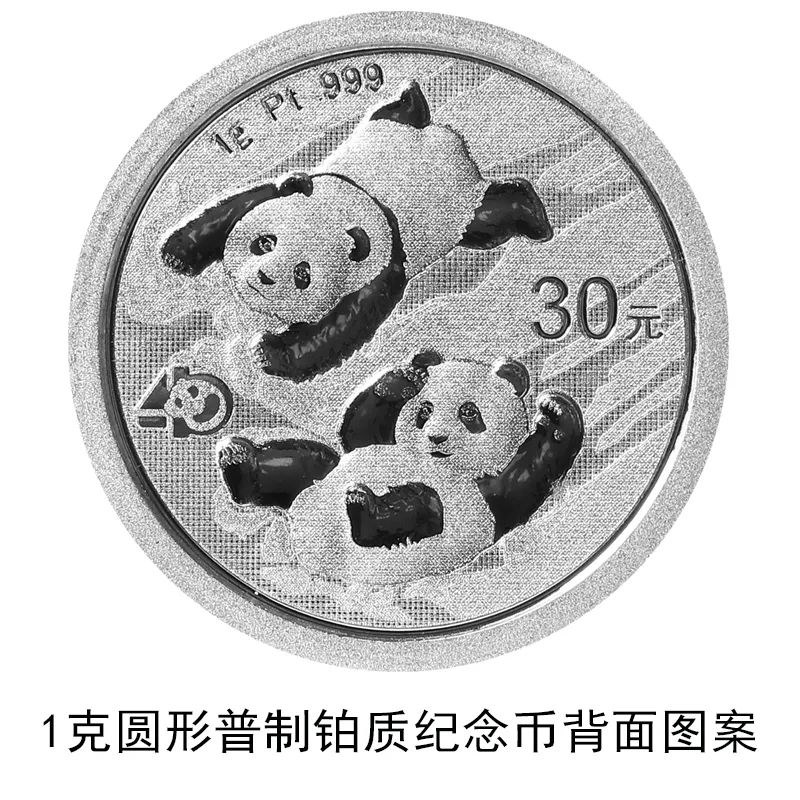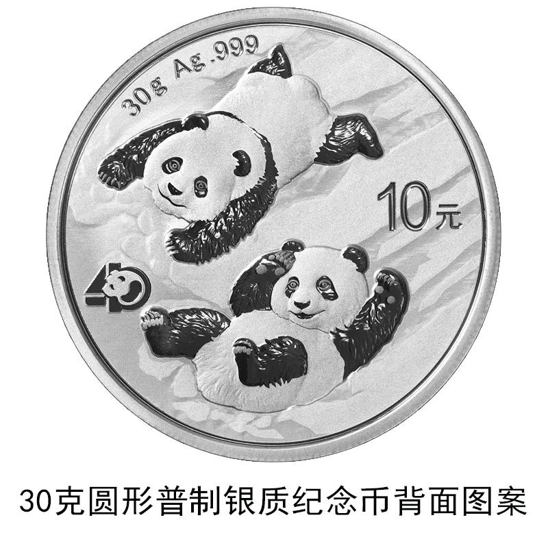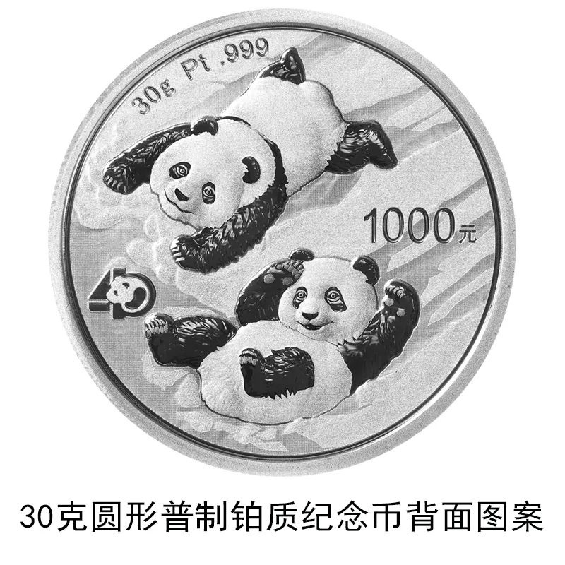 該套貴金屬紀(jì)念幣正面圖案均為北京天壇祈年殿,并刊國名、年號;背面圖案均為大熊貓滑雪嬉戲場景,輔以“熊貓金幣發(fā)行40周年標(biāo)識”元素,并刊面額、重量及成色。