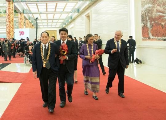 2019年9月29日,國家勛章和國家榮譽稱號獲得者在儀式后步出人民大會堂金色大廳。經(jīng)中共中央批準,中華人民共和國國家勛章和國家榮譽稱號頒授儀式于9月29日上午10時在北京人民大會堂隆重舉行。新華社記者王曄攝