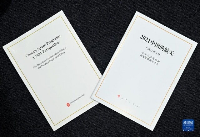 這是1月28日拍攝的《2021中國(guó)的航天》白皮書(shū)。當(dāng)日,國(guó)務(wù)院新聞辦公室發(fā)布《2021中國(guó)的航天》白皮書(shū),并在北京舉行新聞發(fā)布會(huì)?!⌒氯A社記者 金良快 攝