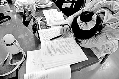 湖南省衡陽市南華大學(xué),考研學(xué)生在圖書館里看書復(fù)習(xí)。彭鵬攝/光明圖片