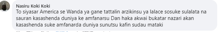 尼日利亞網(wǎng)友納斯魯(Nasiru Koki Koki)留言:“正是美國自身經(jīng)濟(jì)的衰退,使得它如此迫切地想要阻止其他國家的經(jīng)濟(jì)發(fā)展,面對美國的挑釁,中國應(yīng)采取審慎的態(tài)度。”