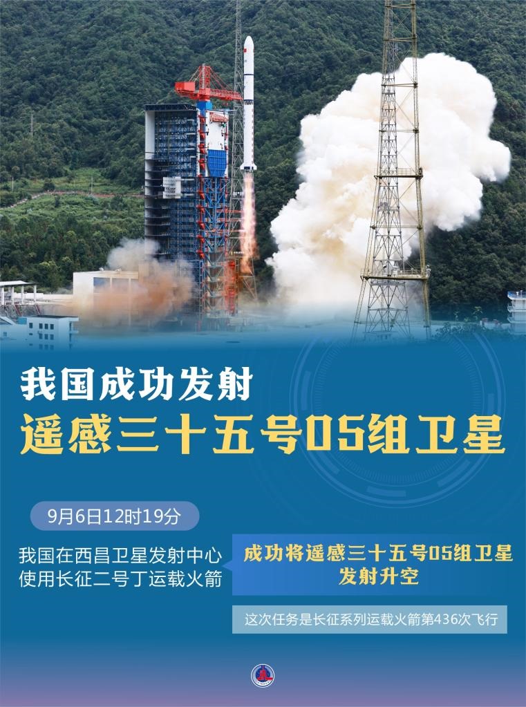 新華社西昌9月6日電(李國利、胡煦劼)9月6日12時19分,我國在西昌衛(wèi)星發(fā)射中心使用長征二號丁運載火箭,成功將遙感三十五號05組衛(wèi)星發(fā)射升空。衛(wèi)星順利進入預(yù)定軌道,發(fā)射任務(wù)獲得圓滿成功。