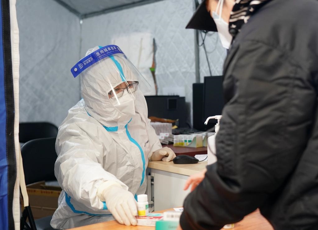 近日,為方便發(fā)熱患者就醫(yī),保障群眾就醫(yī)需求,北京市部分醫(yī)院在體育館里開設(shè)簡易發(fā)熱門診,為市民提供診療、開藥等服務(wù)。新華社記者 張晨霖 攝