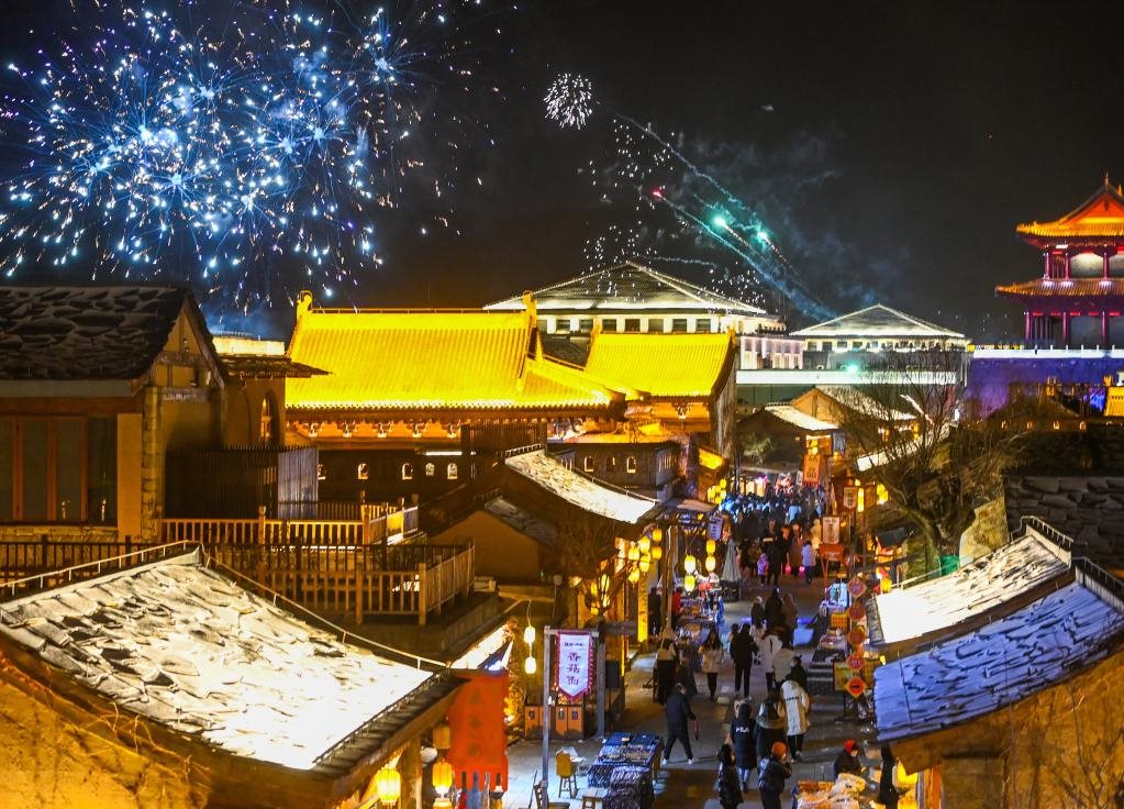 游客在金延安文化旅游產(chǎn)業(yè)園內(nèi)游覽(1月14日攝)。新華社發(fā)(鄒競(jìng)一攝)
