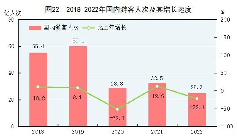 全年國內(nèi)游客25.3億人次,比上年下降22.1%。其中,城鎮(zhèn)居民游客19.3億人次,下降17.7%;農(nóng)村居民游客6.0億人次,下降33.5%。國內(nèi)旅游收入20444億元,下降30.0%。其中,城鎮(zhèn)居民游客花費(fèi)16881億元,下降28.6%;農(nóng)村居民游客花費(fèi)3563億元,下降35.8%。