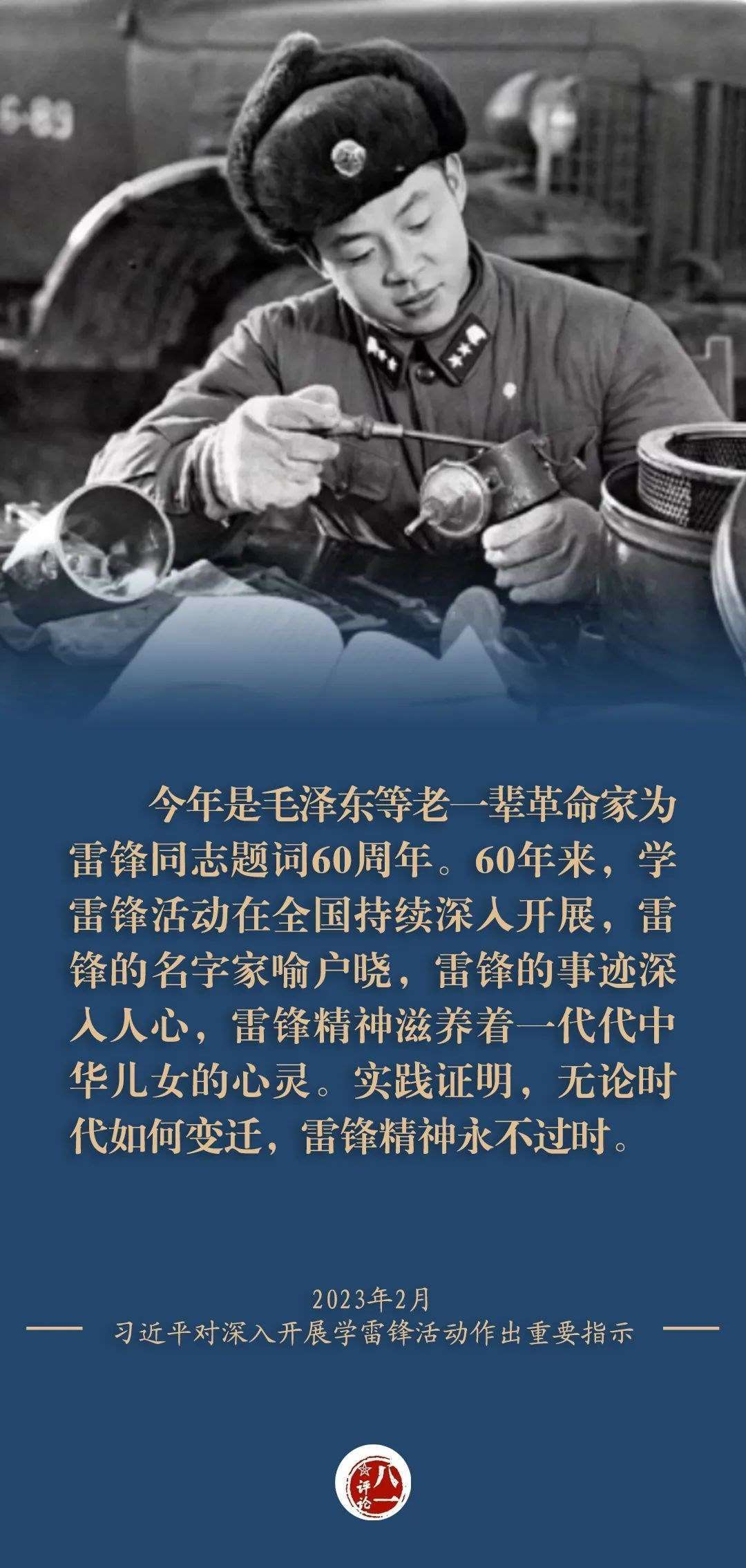 黨的十八大以來,習(xí)近平總書記對(duì)弘揚(yáng)雷鋒精神作出一系列重要論述,深刻指出“雷鋒是時(shí)代的楷模,雷鋒精神是永恒的”“雷鋒精神,人人可學(xué);奉獻(xiàn)愛心,處處可為”。