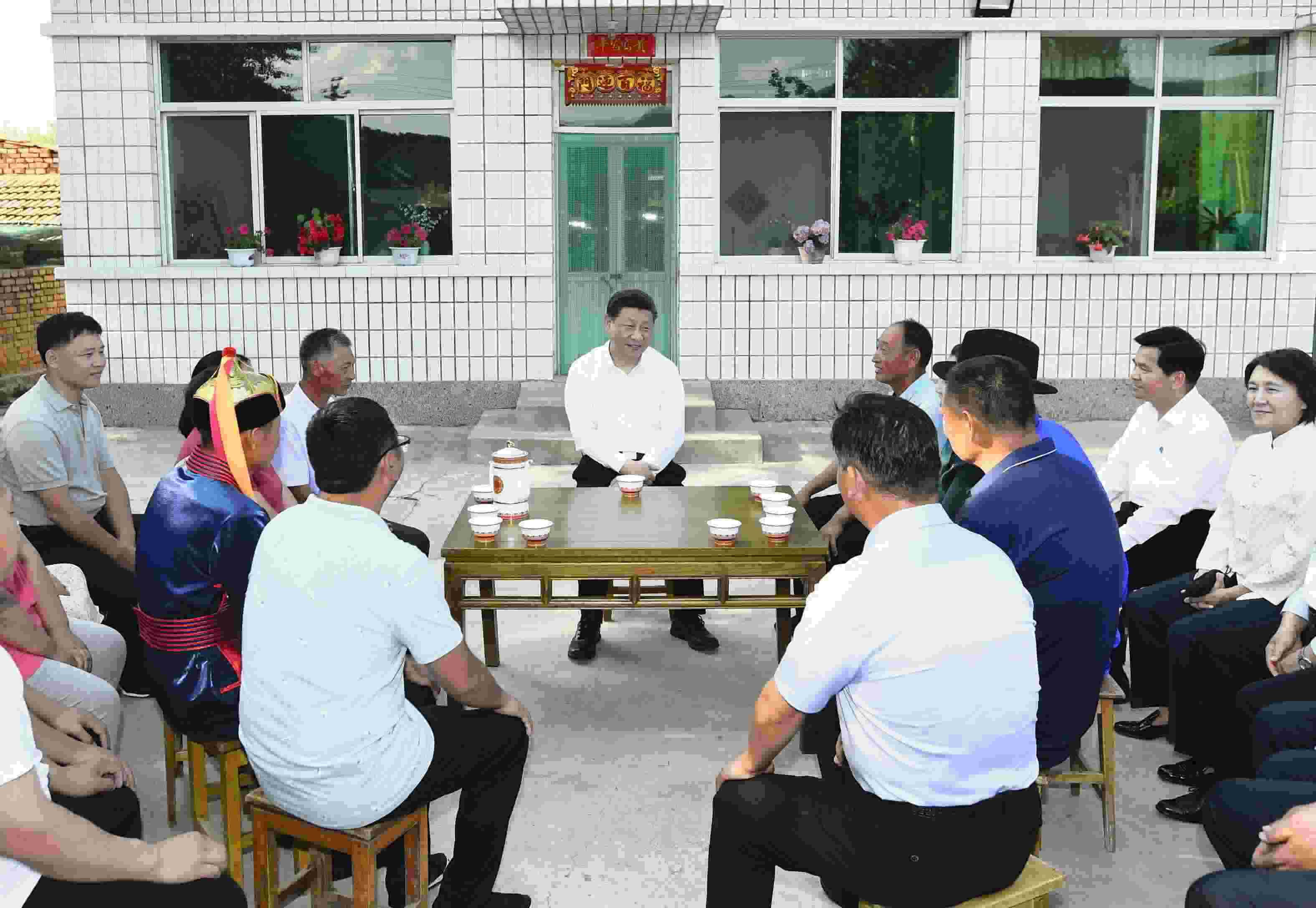 2019年7月15日至16日,中共中央總書(shū)記、國(guó)家主席、中央軍委主席習(xí)近平在內(nèi)蒙古考察并指導(dǎo)開(kāi)展“不忘初心、牢記使命”主題教育。這是15日下午,習(xí)近平在赤峰市喀喇沁旗河南街道馬鞍山村村民張國(guó)利家,同基層干部群眾代表座談交流。 新華社記者 謝環(huán)馳/攝