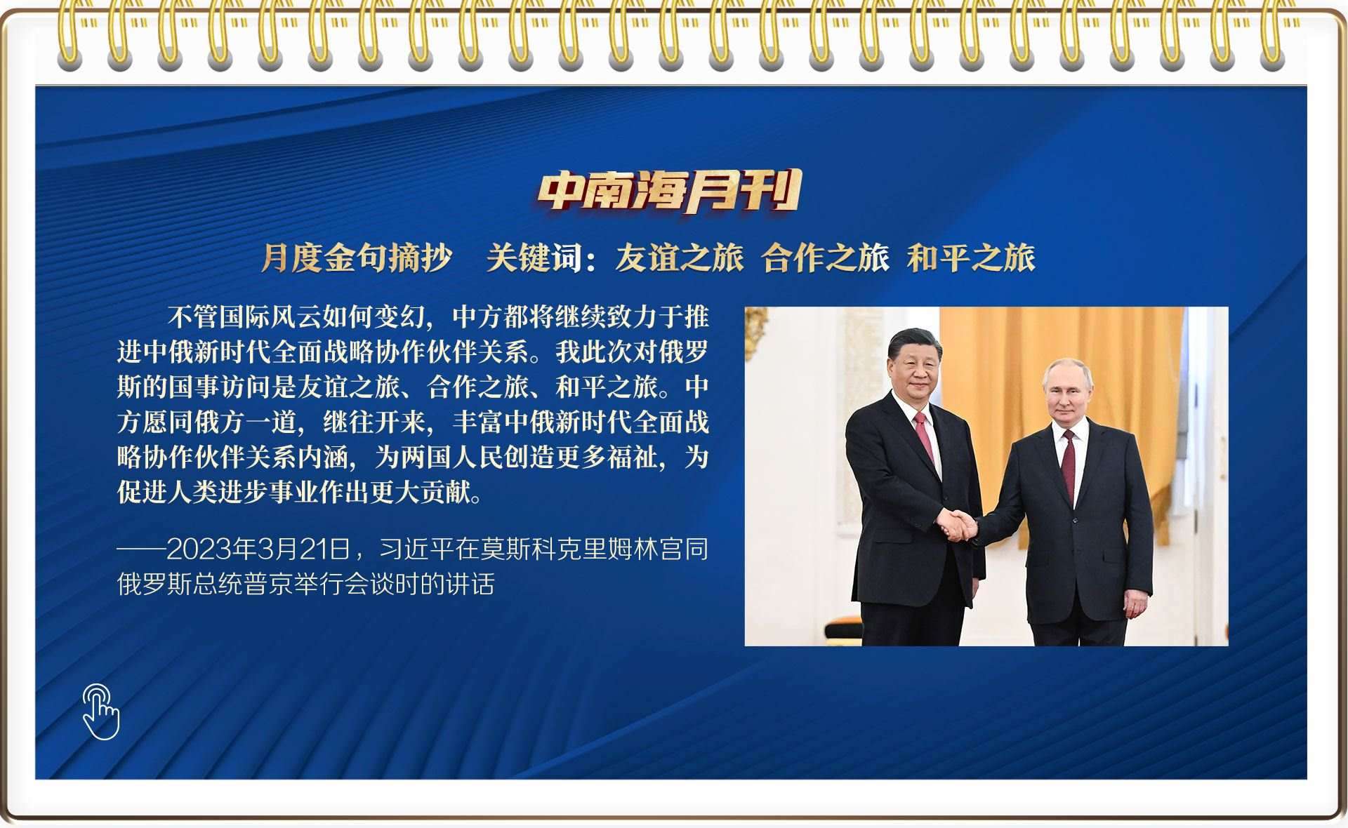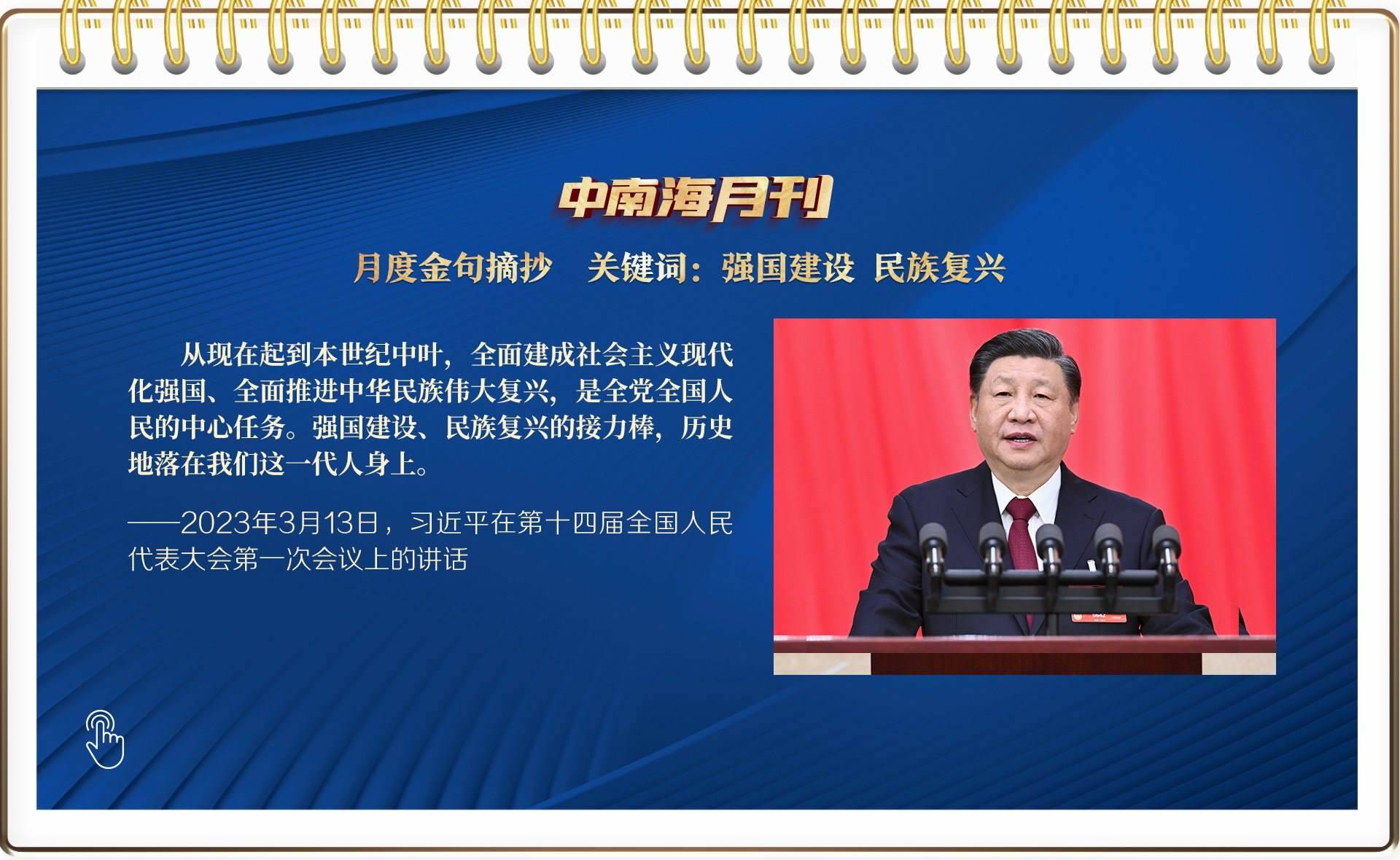 央視網(wǎng)《中南海月刊》運用智能大數(shù)據(jù),與您一起回顧習(xí)近平總書記3月份繁忙的工作和講話,感受我們共和國前進掌舵者、人民幸福領(lǐng)路人赤誠的為民情懷和天下胸懷。