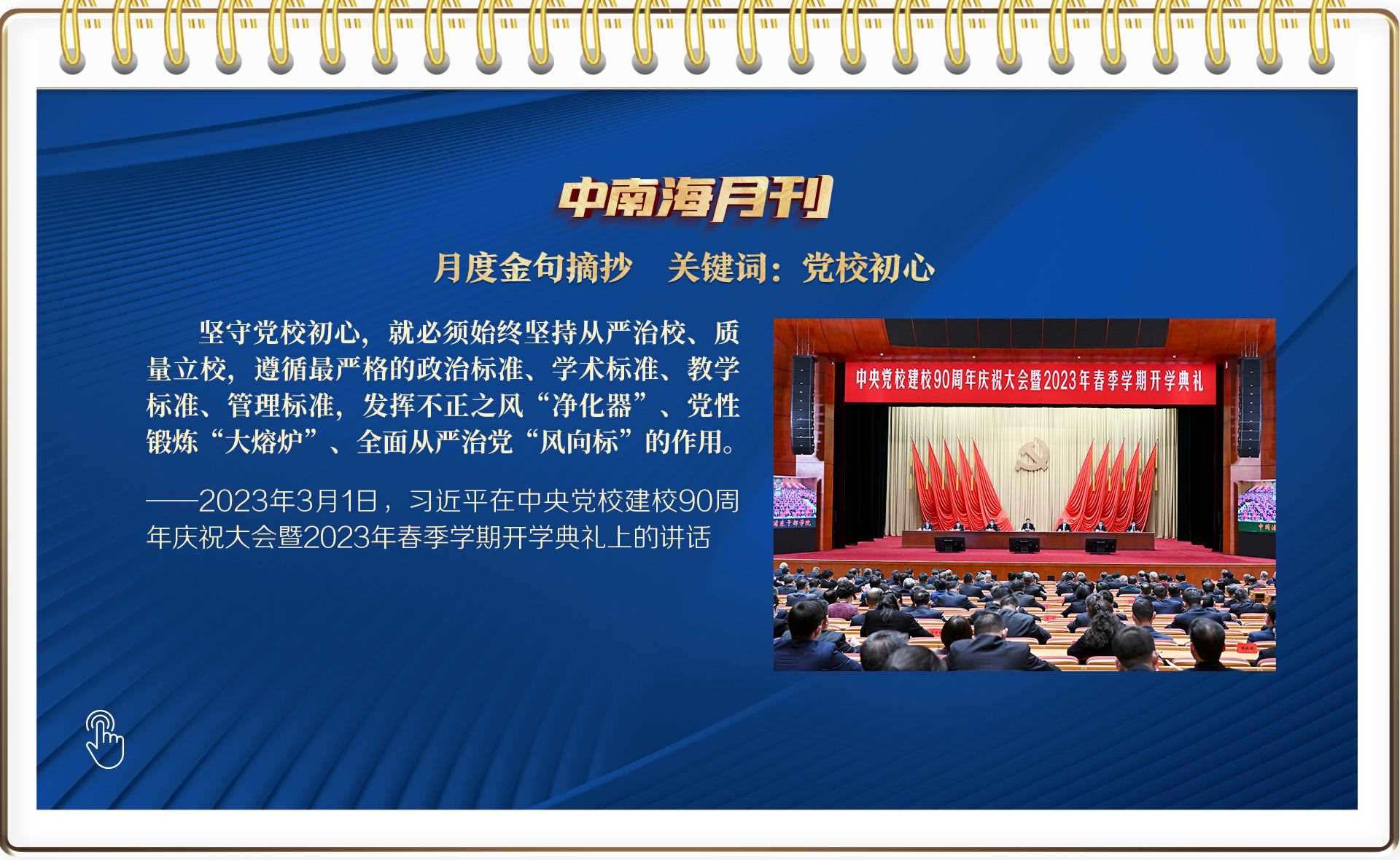 本月,中國共產(chǎn)黨的最高學(xué)府——中央黨校迎來90歲生日,習(xí)近平總書記出席春季學(xué)期開學(xué)典禮,他用“凈化器”、“大熔爐”、“風向標”作比喻,闡明了新時代黨校工作的重要性。