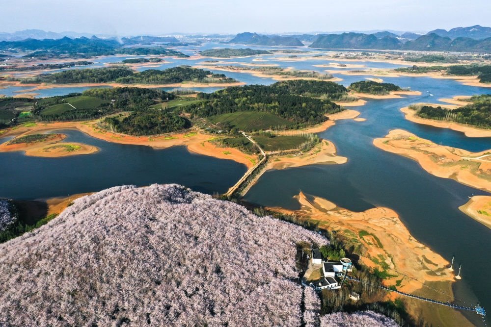 貴州省貴安新區(qū)櫻花園(無(wú)人機(jī)照片,2023年3月21日攝)。新華社記者 楊文斌 攝