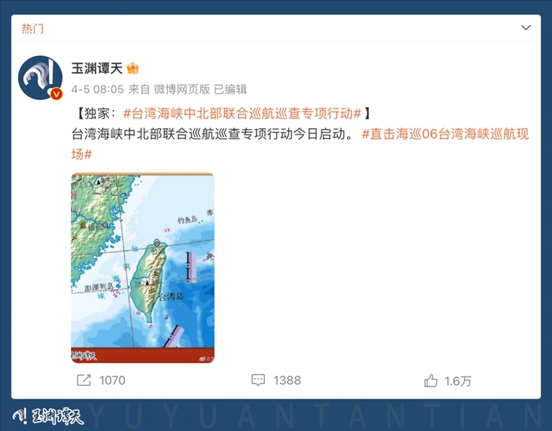 多家主流媒體轉(zhuǎn)發(fā)引用,消息瞬間傳遍全網(wǎng)。90余家臺灣媒體多平臺轉(zhuǎn)發(fā),揣測此次巡航活動(dòng)及玉淵譚天配圖釋放的信號。臺當(dāng)局就此消息進(jìn)行緊急回應(yīng),美國之音也撰文評論。