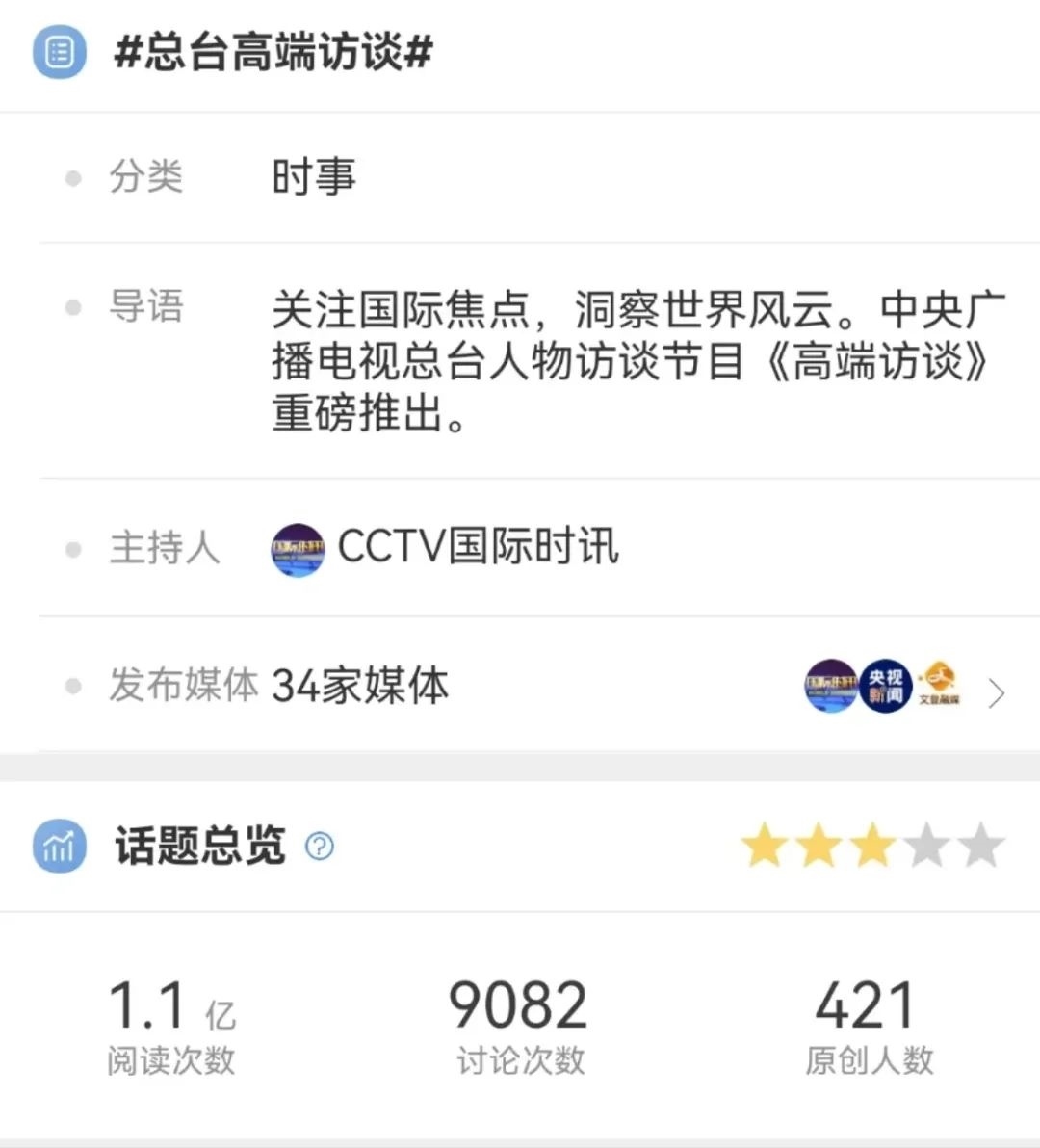采訪國際政要+周更+30分鐘的時長,總臺《高端訪談》如何打造兼具全球視野和中國風(fēng)范的精品力作,講好新風(fēng)撲面、真誠親和的文明互鑒故事?這檔訪談欄目,何以“高端”?