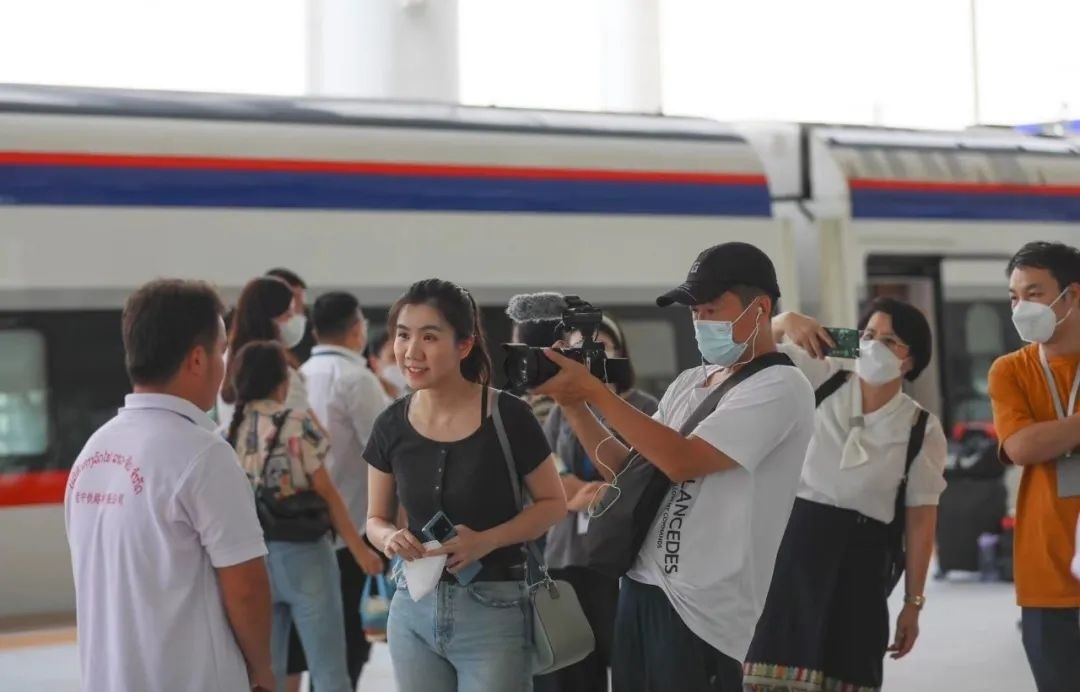 比如,專訪老撾國家主席通倫的節(jié)目中,主持人鄒韻在中老鐵路“瀾滄號”動車上采訪當?shù)芈每?,車窗外鐵路沿線風(fēng)光萬千,總臺出品的歌曲《坐著火車去老撾》活潑輕盈,各國乘客用最真實的出行體驗,生動展現(xiàn)了跨越山河、聯(lián)結(jié)友誼的中老鐵路,是共建“一帶一路”取得的實打?qū)嵉某删汀?/p>
