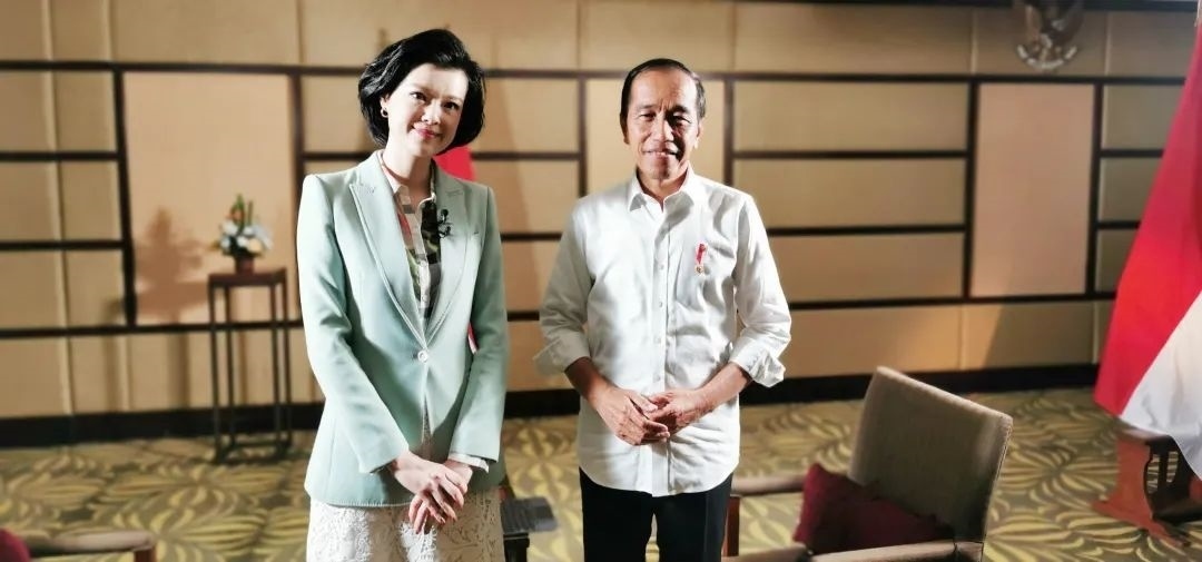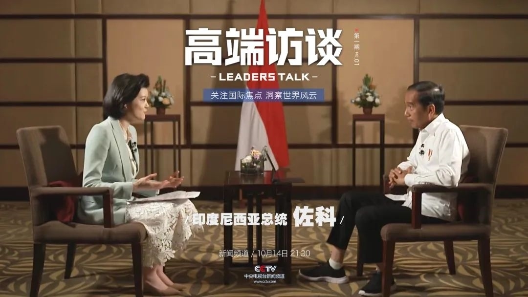 △總臺主持人鄒韻采訪印度尼西亞總統(tǒng)佐科