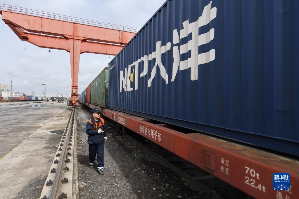當(dāng)日,河北省廊坊市正式開通中歐(中亞)班列(廊坊——塔什干)。首列開行的集裝箱班列編組55輛,由廊坊北鐵路貨場始發(fā),經(jīng)霍爾果斯口岸出境,途經(jīng)哈薩克斯坦,最終抵達烏茲別克斯坦塔什干,全程約6000公里,預(yù)計運行時間約15天,貨物總重量1400余噸,主要包括保溫管、機械設(shè)備、型材等。新華社發(fā)(劉向攝)