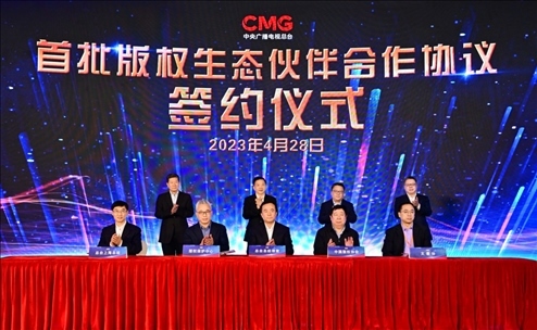 4月28日,以“共融共生 共創(chuàng)未來”為主題的中央廣播電視總臺首屆版權生態(tài)合作大會在上海舉行。中宣部副部長、中央廣播電視總臺臺長慎海雄,上海市委常委、宣傳部部長趙嘉鳴出席,并與中國版權協(xié)會理事長閻曉宏、總臺編務會議成員彭健明共同見證總臺首批版權生態(tài)伙伴簽約。