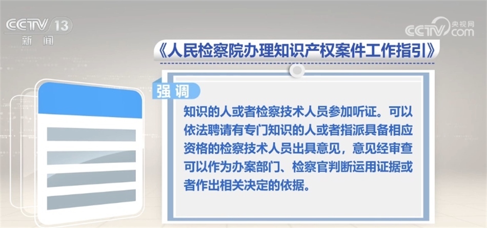 同時,《工作指引》強(qiáng)調(diào),遇有涉及國家秘密、商業(yè)秘密、個人隱私或者其他需要保密的情形,應(yīng)當(dāng)依利害關(guān)系人書面申請,采取組織訴訟參與人簽署保密承諾書、對秘密信息進(jìn)行技術(shù)處理等必要的保密措施。針對知識產(chǎn)權(quán)案件技術(shù)性強(qiáng)的特點(diǎn),根據(jù)案件需要,可以邀請有專門知識的人或者檢察技術(shù)人員參加聽證,可以依法聘請有專門知識的人或者指派具備相應(yīng)資格的檢察技術(shù)人員出具意見。意見經(jīng)審查可以作為辦案部門、檢察官判斷運(yùn)用證據(jù)或者作出相關(guān)決定的依據(jù)。