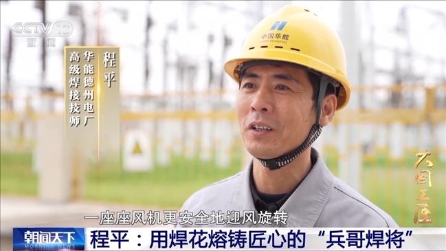 華能德州電廠高級焊接技師 程平:這十來年,新能源迎來了大的發(fā)展,每次看到經(jīng)過我的手,一座座風(fēng)機(jī)更安全地迎風(fēng)旋轉(zhuǎn),能夠參與新能源的建設(shè),為國家出一份力,見證它的發(fā)展進(jìn)程,我感到自己非常驕傲也很自豪。
