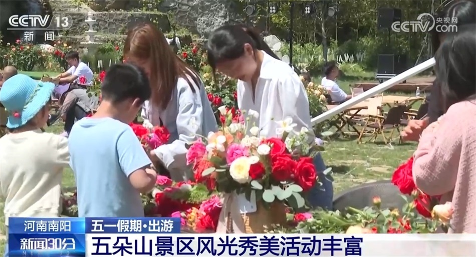 在河南南陽市五朵山景區(qū),“五一”假期吸引了大批游客。今天上午,入園的游客就已經(jīng)超過了1萬人。眼下正是南陽月季博覽會(huì)召開的時(shí)間,五朵山景區(qū)舉辦了一系列的賞花采風(fēng)活動(dòng),景區(qū)內(nèi)還組織了鄉(xiāng)村音樂節(jié)、漢服文化節(jié)和非遺民俗的表演,讓人們?cè)谛蕾p美麗的自然風(fēng)光之余,感受傳統(tǒng)文化的魅力。
