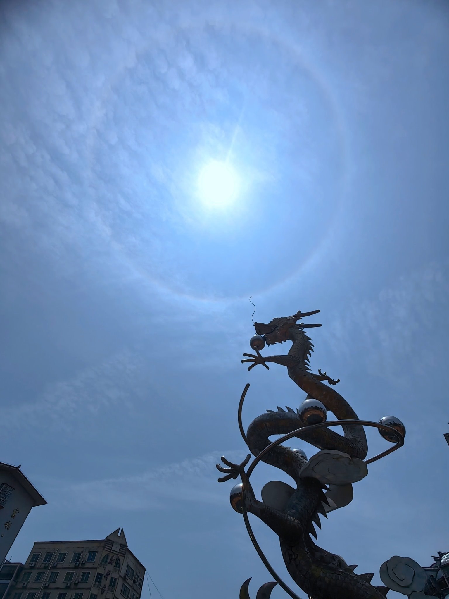 2023年4月30日,廣西來賓,忻城縣上空出現(xiàn)日暈景觀。視覺中國