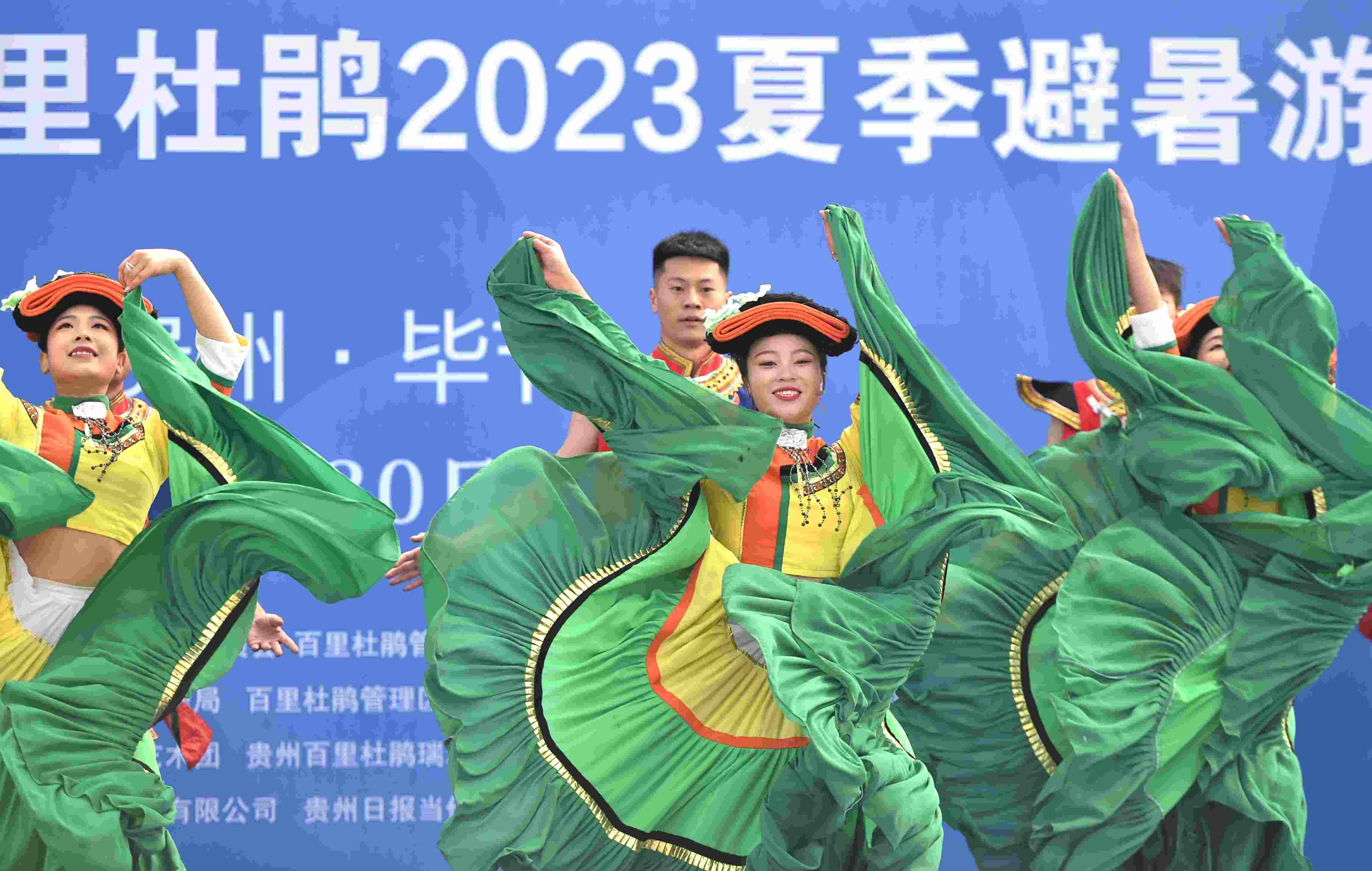2023年4月30日,演員在貴州省畢節(jié)百里杜鵑方家坪景區(qū)表演彝族舞蹈。 (寧堅(jiān) 柏祥意)