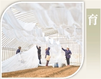 山東省青州市益都街道北河?xùn)|村一處蔬菜育種試驗(yàn)基地內(nèi),工人在準(zhǔn)備蔬菜繁殖所需的保溫膜。王繼林?jǐn)z(影像中國(guó))