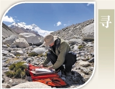 中國(guó)科學(xué)院昆明植物研究所中國(guó)西南野生生物種質(zhì)資源庫(kù)采集員在珠峰大本營(yíng)采集種子標(biāo)本。蔡 杰攝(人民視覺(jué))