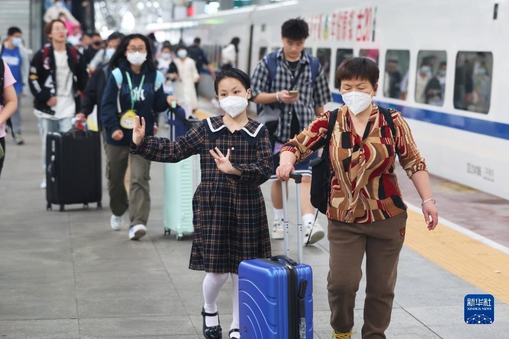 5月3日,旅客在南京火車站乘車出行。