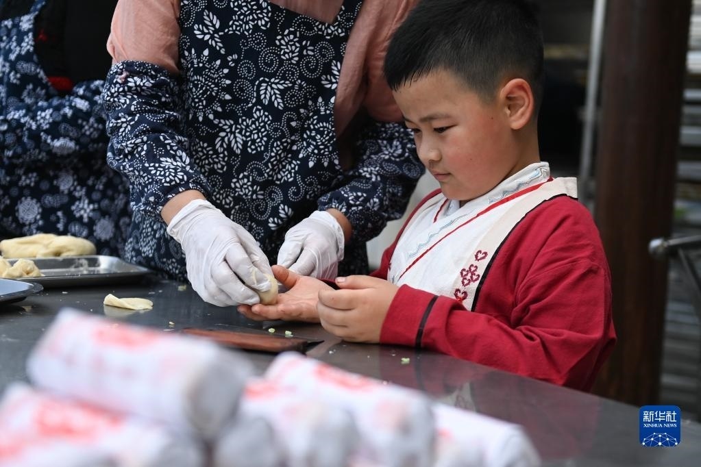 5月4日,小朋友學(xué)習(xí)制作“立夏餅”。