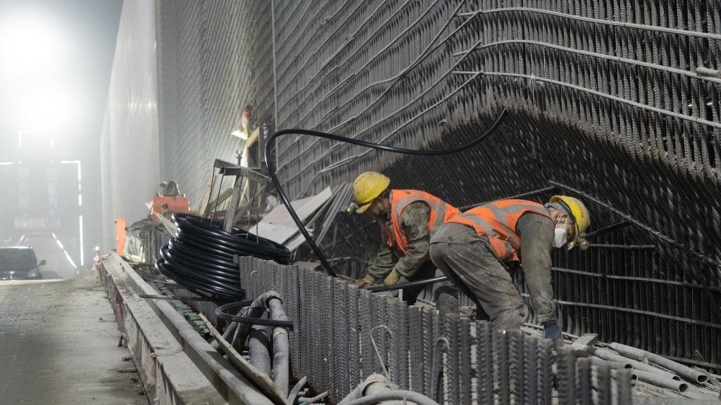 建設(shè)者奮戰(zhàn)在雙江口水電站施工一線。新華社記者楊進 攝