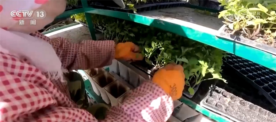 村民 張宏飛:以前用老式的(移栽機),一天一個機子得用四個人,四個人就是八百塊錢,現在只需要兩個人,四百塊錢,我們這個三百畝番茄地大概要栽三天,算下來的話就是大約省五千塊錢。