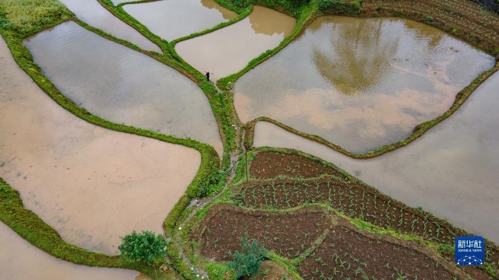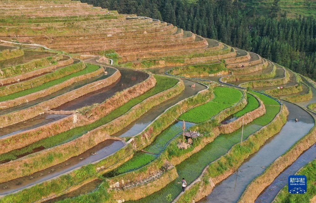 5月6日拍攝的貴州省從江縣加榜鄉(xiāng)加車村的梯田(無(wú)人機(jī)照片)。