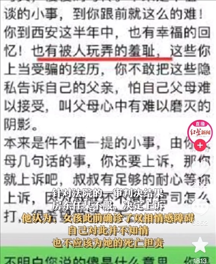 ·房東”逼死“大學生租客被判賠19萬,房東不服上訴。
