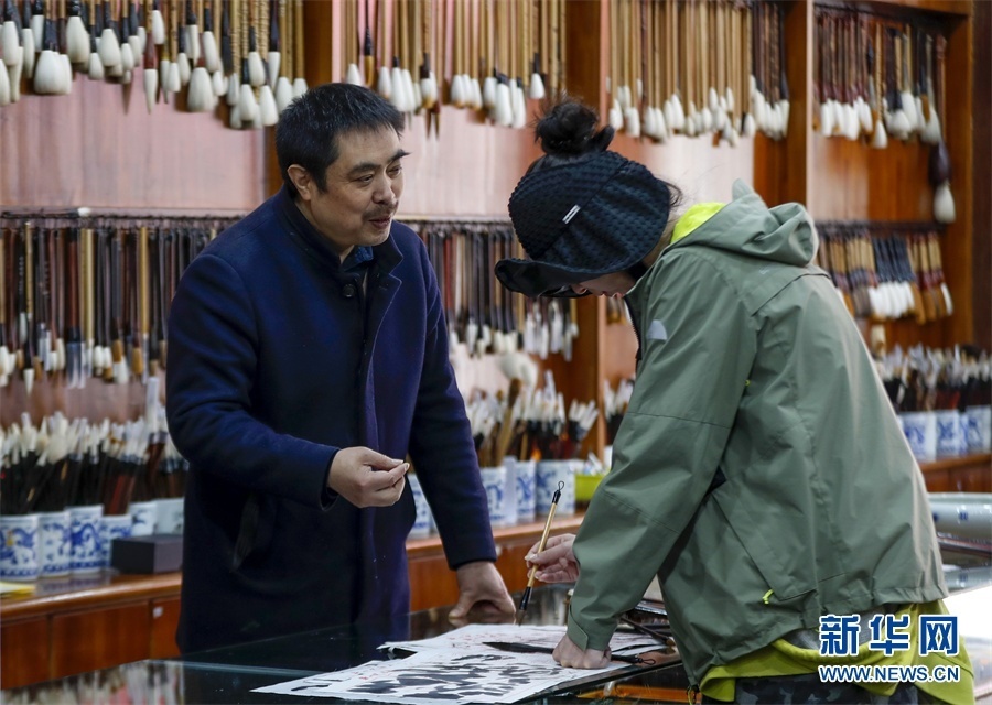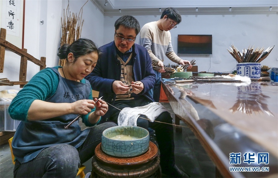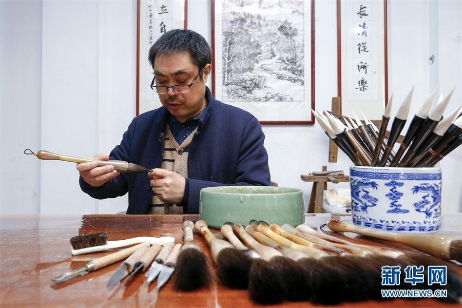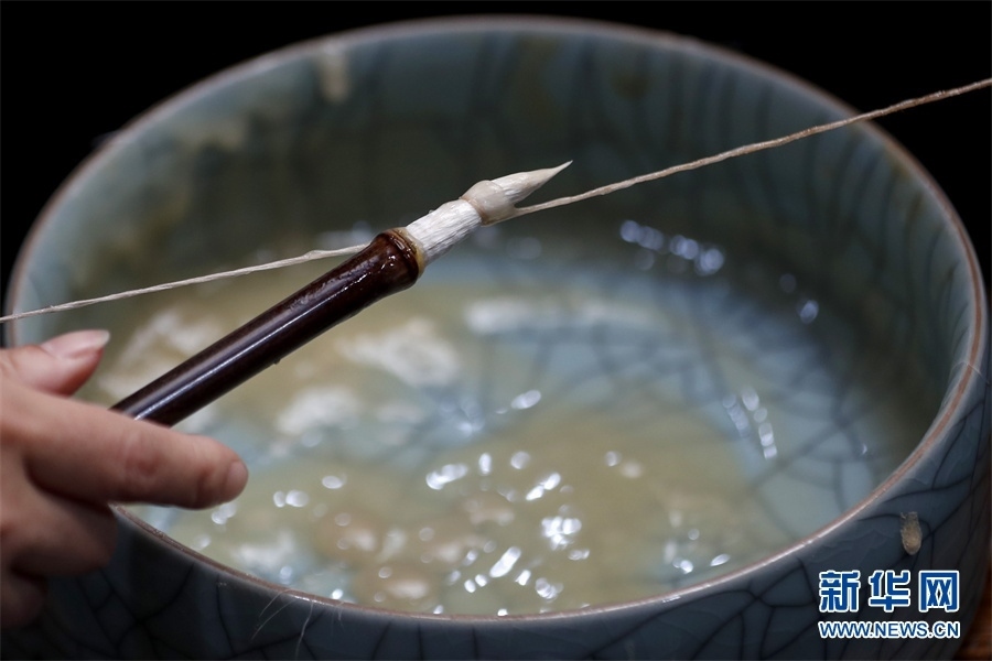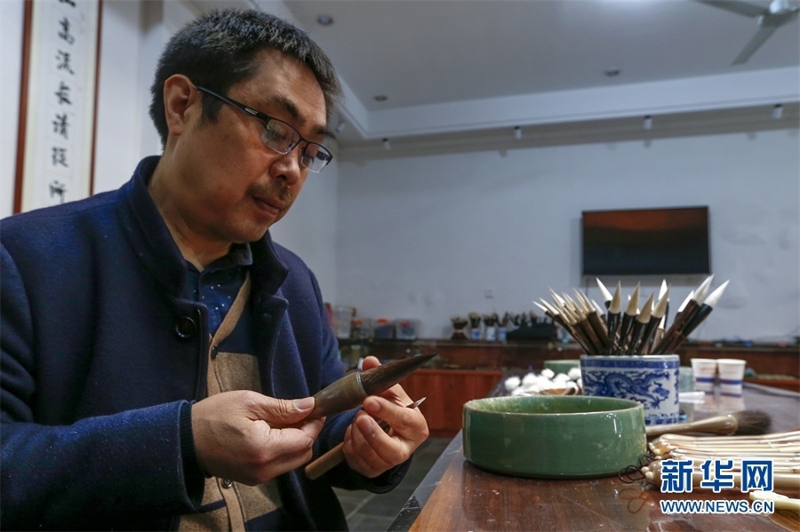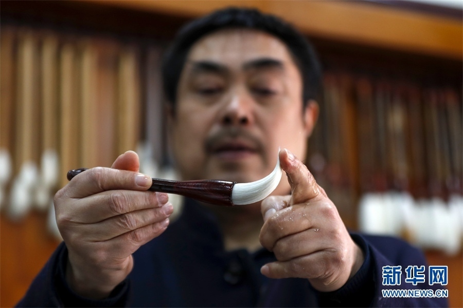 一支好的徽筆,不僅要保留傳統(tǒng)工藝,且要在原基礎(chǔ)上不斷創(chuàng)新、改良。楊文尤其重視書畫家對(duì)筆的使用反饋:“因?yàn)樗麄儗?duì)用筆最挑剔,而且現(xiàn)代書畫家創(chuàng)作方式和作品不斷創(chuàng)新,對(duì)毛筆也有新的要求,他們提出的要求我總是盡力去滿足,也使得制筆技藝進(jìn)一步得到了提高。” 新華網(wǎng)發(fā)(施亞磊 攝)