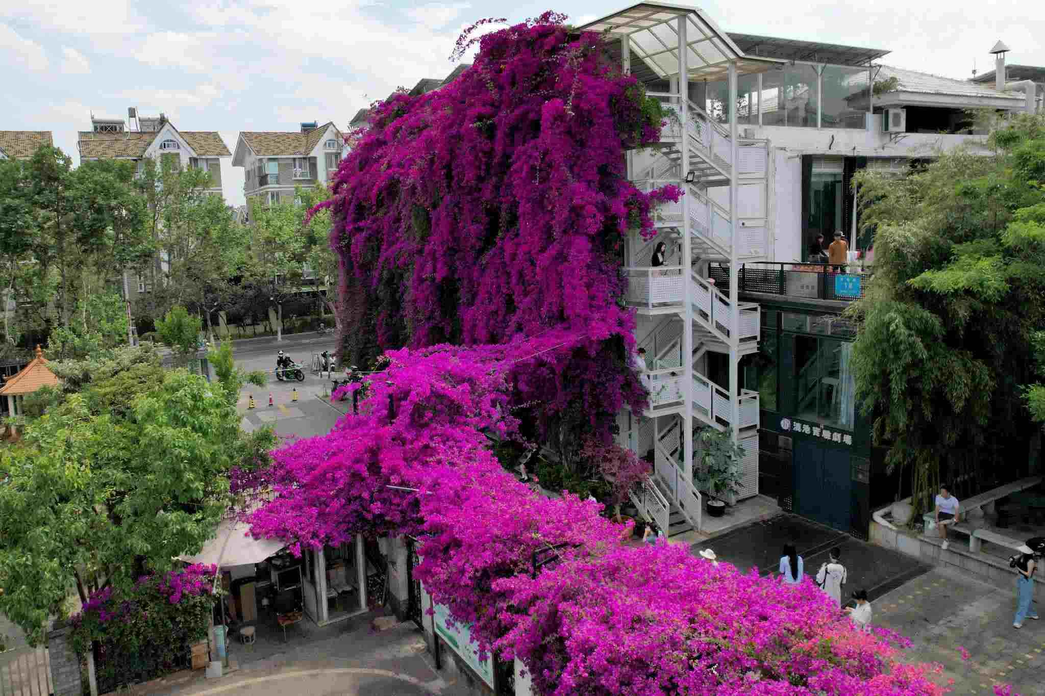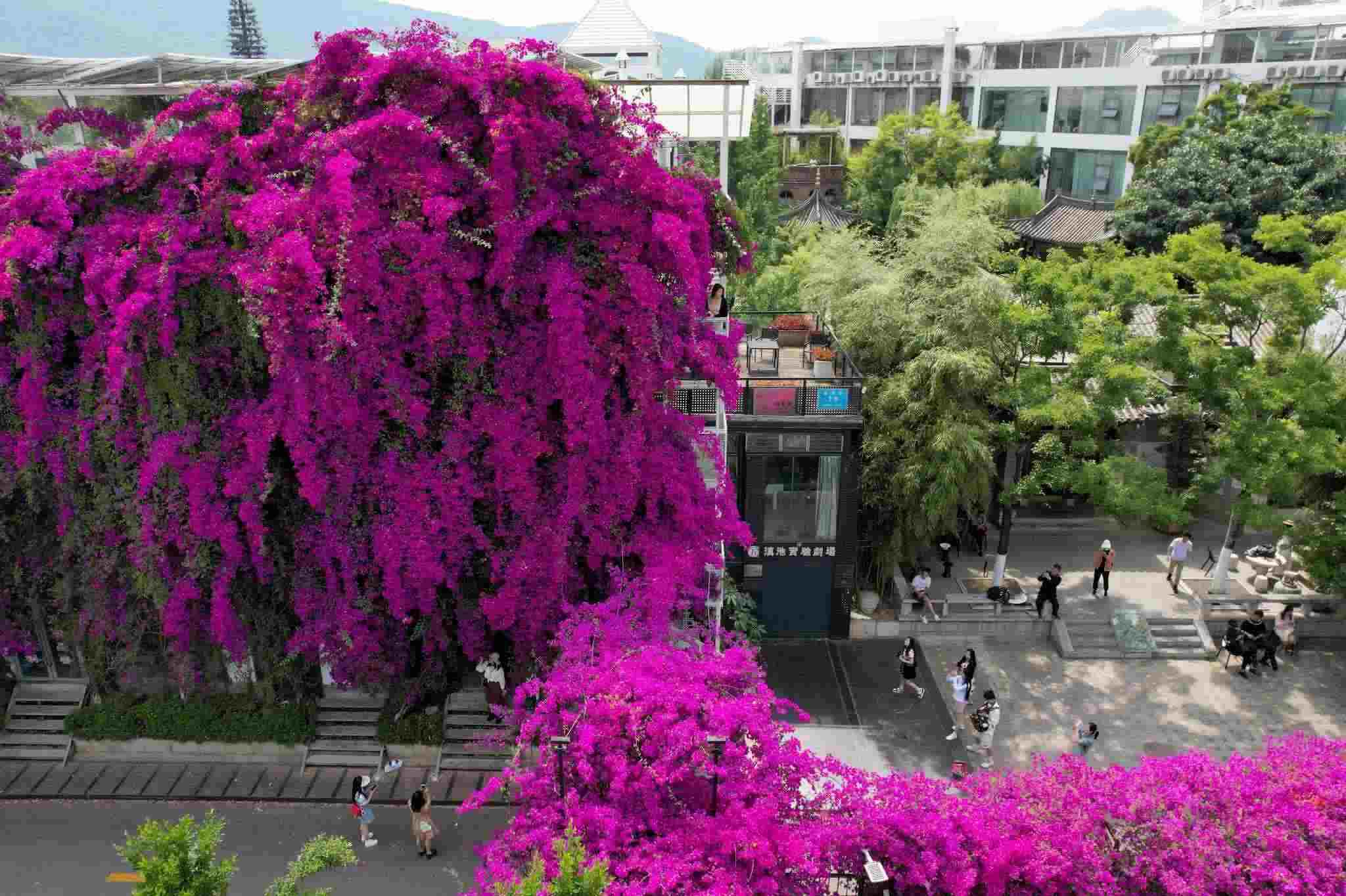 近日,云南省昆明市街頭的三角梅迎來(lái)盛花期,盛開(kāi)的花朵如瀑布般傾瀉而下,吸引許多市民前來(lái)觀賞、拍照。 視覺(jué)中國(guó)