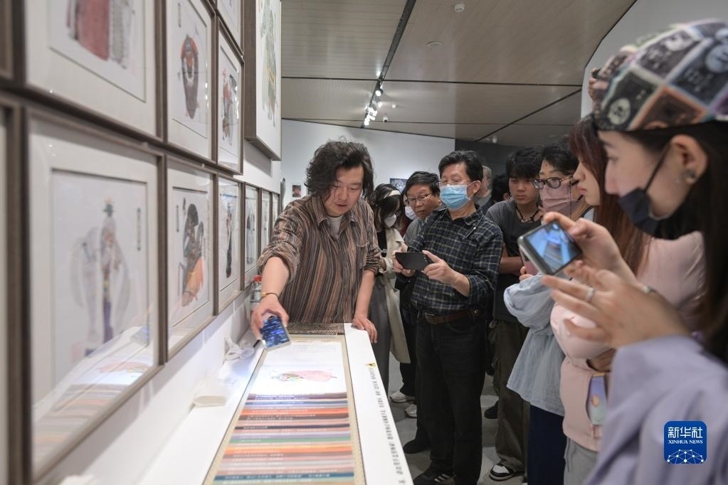 5月9日,作者申杰在展覽現(xiàn)場(chǎng)向觀眾介紹自己的作品。