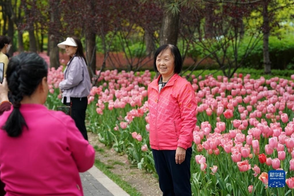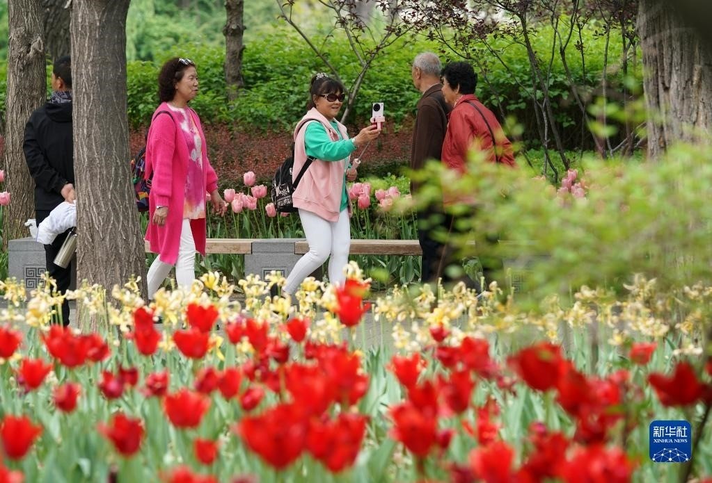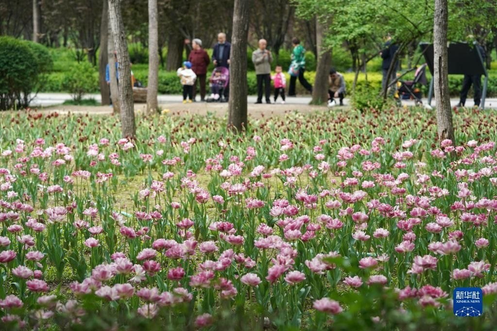 近日,山西省太原市迎澤公園內(nèi)各色郁金香競相綻放,吸引游人前來觀花賞景。新華社記者 詹彥 攝