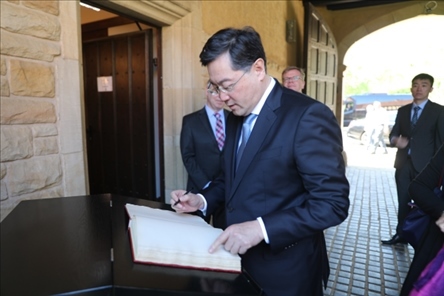央視網(wǎng)消息:據(jù)外交部,當?shù)貢r間2023年5月10日,國務(wù)委員兼外長秦剛在柏林參觀波茨坦會議舊址并發(fā)表講話。