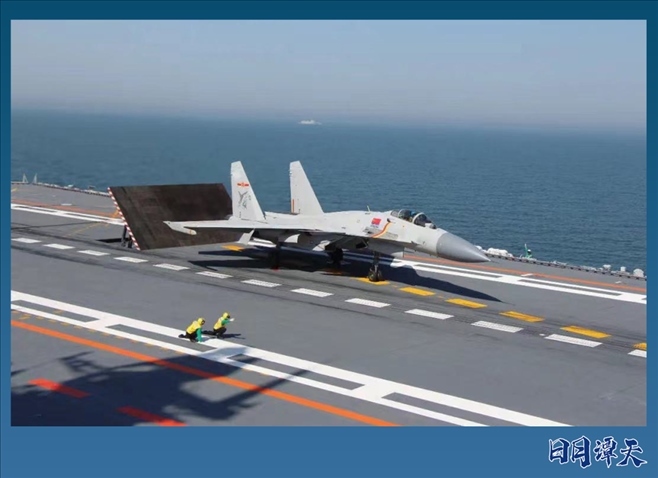 戰(zhàn)機(jī)在遼寧艦做起飛準(zhǔn)備