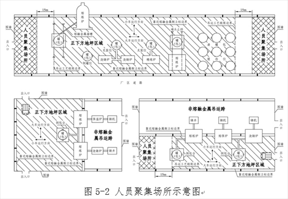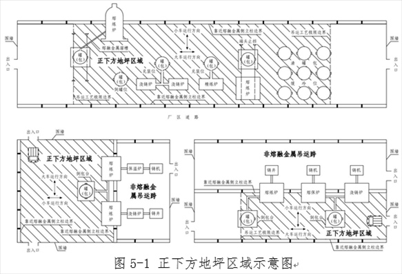 (二)生產(chǎn)期間冶煉、精煉和鑄造生產(chǎn)區(qū)域的事故坑、爐下渣坑,以及熔融金屬泄漏和噴濺影響范圍內(nèi)的爐前平臺(tái)、爐基區(qū)域、廠房?jī)?nèi)吊運(yùn)和地面運(yùn)輸通道等6類區(qū)域存在積水的。