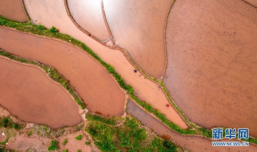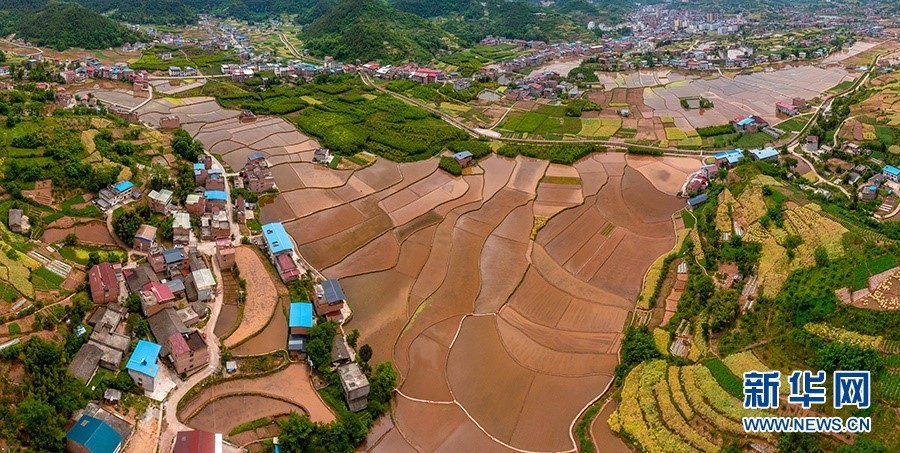 初夏時節(jié)的廟宇鎮(zhèn),農田里水盈盈。新華網(wǎng)發(fā)(朱云平 攝)