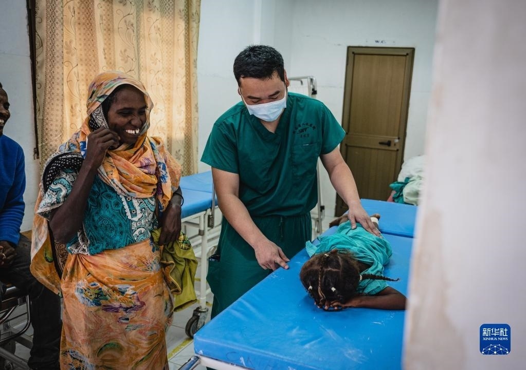 5月9日,在厄立特里亞首都阿斯馬拉的哈利貝特醫(yī)院,醫(yī)療隊(duì)骨科醫(yī)生程旭光為小朋友做檢查。