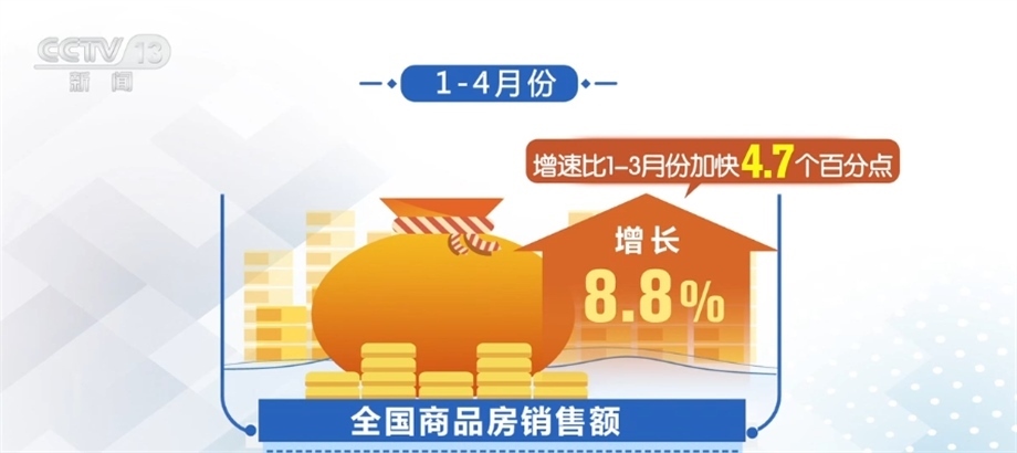 從銷售看,隨著政策效應逐步顯現(xiàn),以及前期疫情積累的需求釋放,1—4月份,全國商品房銷售面積同比下降0.4%,降幅比1—3月份收窄1.4個百分點。銷售額增長8.8%,增速比1—3月份加快4.7個百分點。