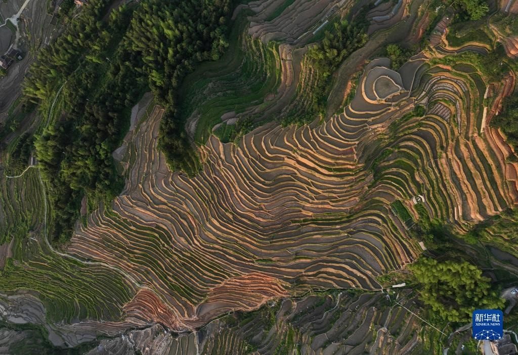 近日,湖南省婁底市新化縣紫鵲界梯田蓄水備耕,水影天光如詩(shī)如畫(huà)。新華社記者 趙眾志 攝