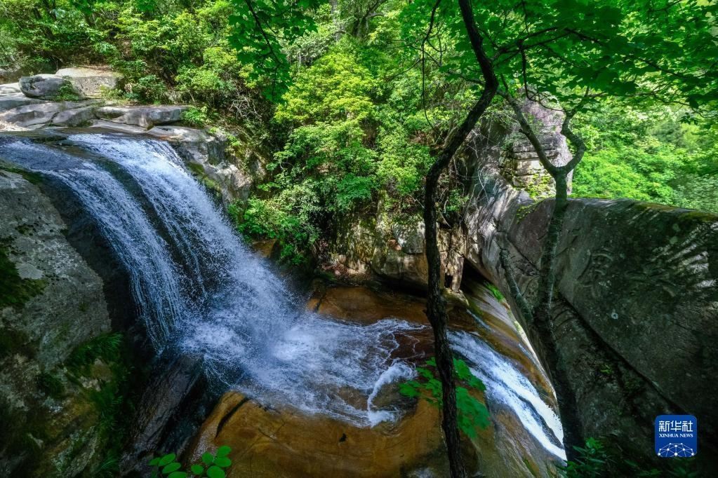 石梁飛瀑一景(5月16日攝)。