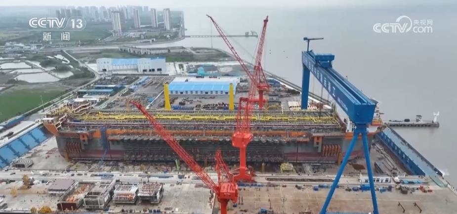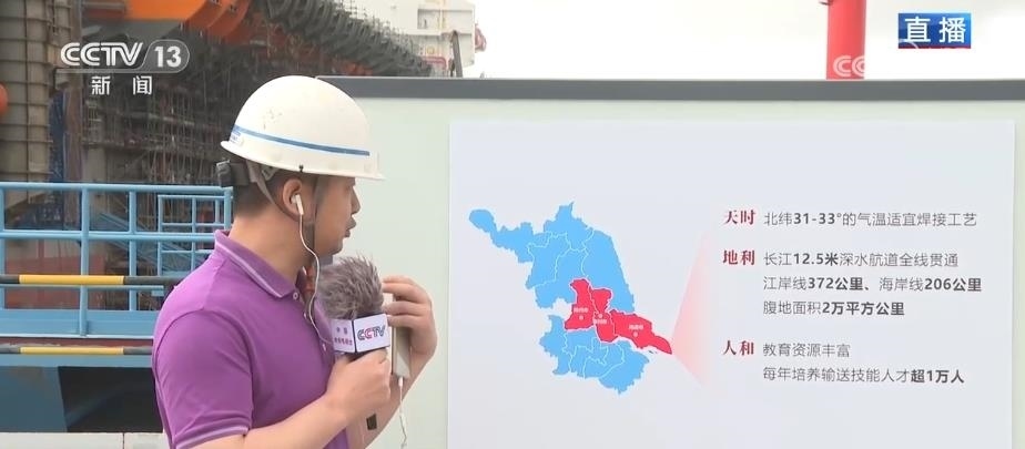 總臺記者 唐高林:我現(xiàn)在是在位于長江入??诘囊患掖爸圃炱髽I(yè),高質(zhì)量發(fā)展調(diào)研行的團隊,正在這里調(diào)研。這幾天調(diào)研團一路沿江而下,從南京到揚州再到無錫等多個城市,看到了江蘇作為制造業(yè)大省,持續(xù)推進“產(chǎn)業(yè)強鏈補鏈”計劃,實體經(jīng)濟呈現(xiàn)出良好的發(fā)展態(tài)勢。