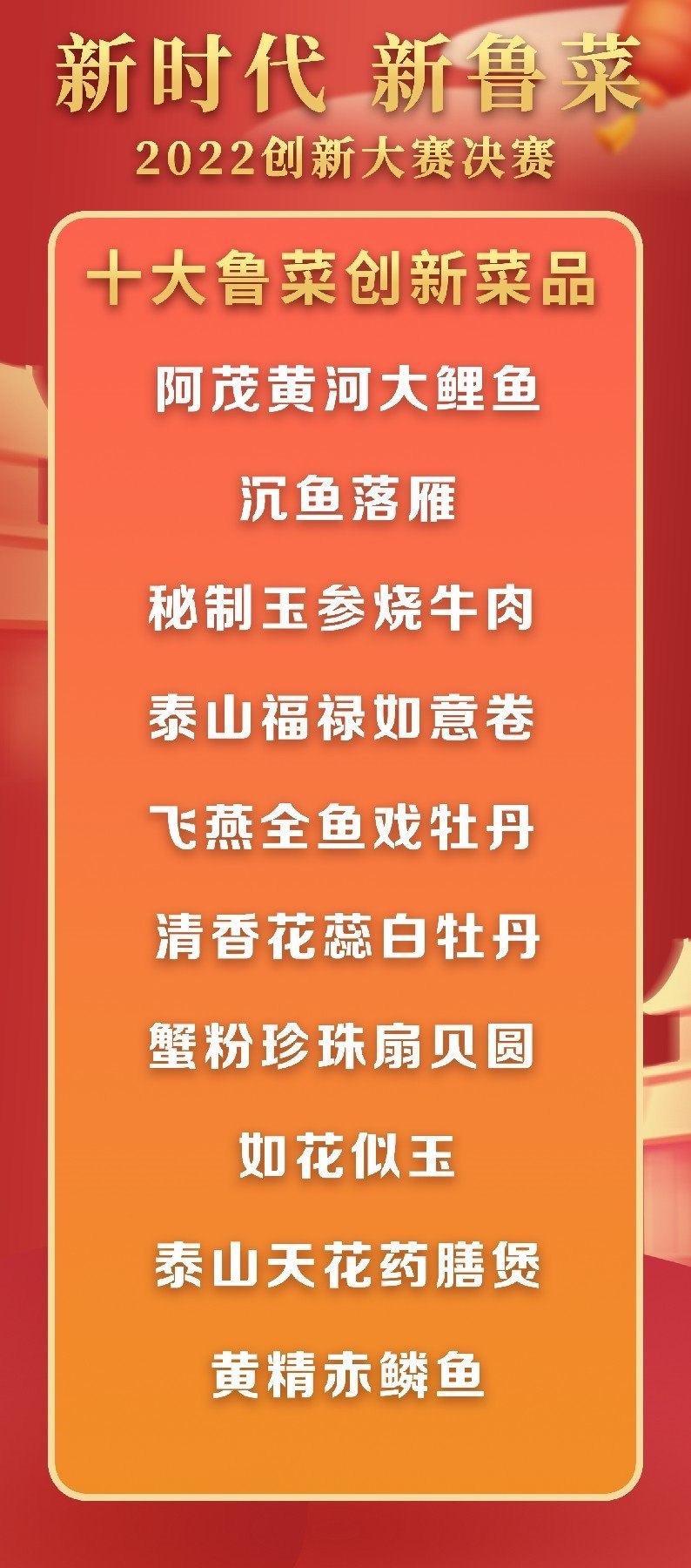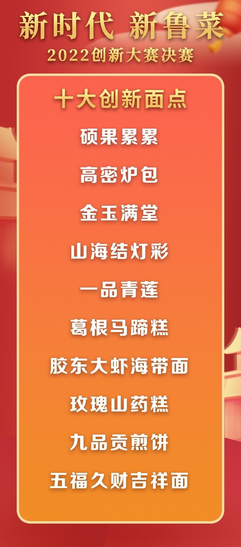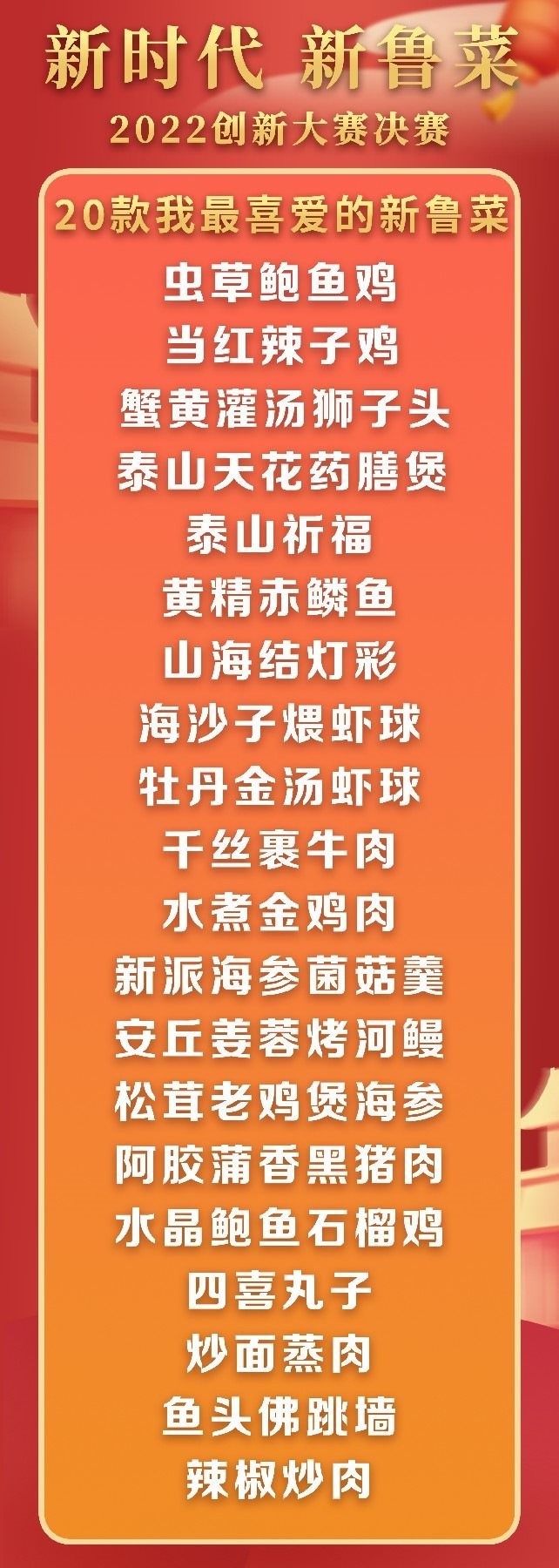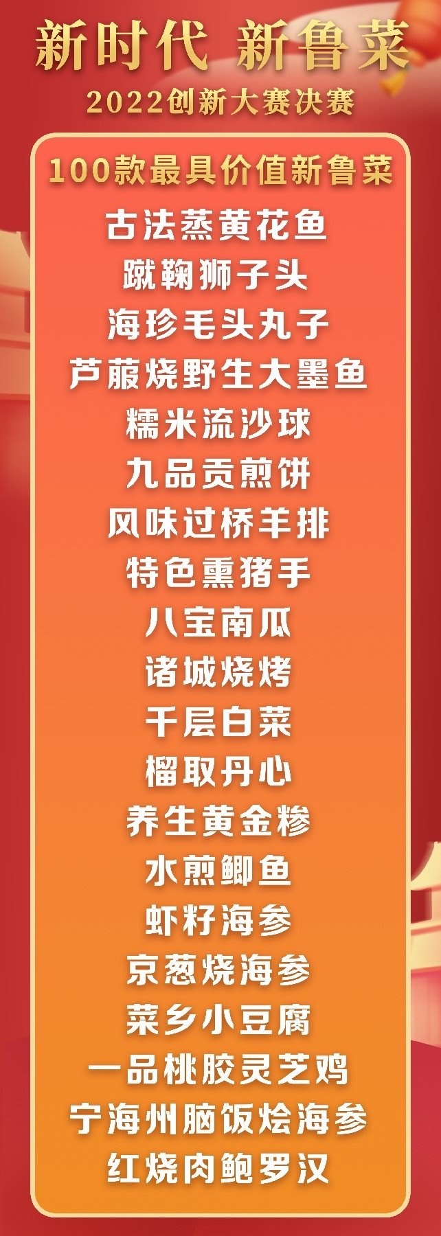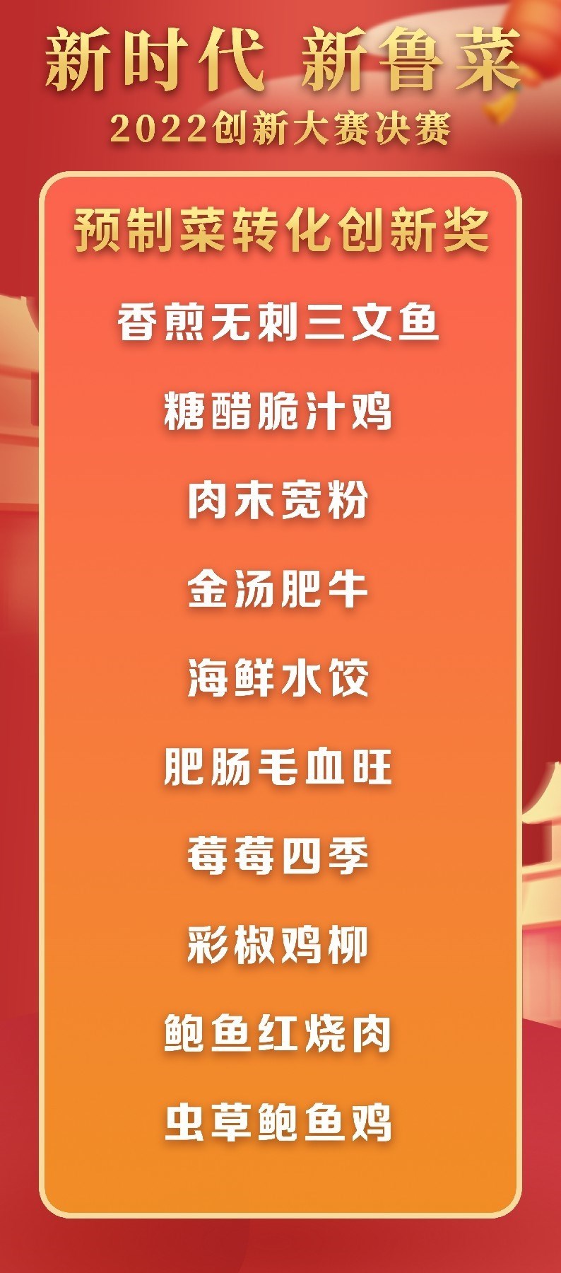 5月18日至19日,“新時代 新魯菜”2022創(chuàng)新大賽決賽暨頒獎活動在山東省濰坊市峽山區(qū)成功舉行,標(biāo)志著本屆大賽圓滿結(jié)束。經(jīng)過激烈角逐,大賽最終頒發(fā)出2022年度“十大魯菜創(chuàng)新菜品”、“20款我最喜愛的新魯菜”、“100款最具價值新魯菜”、“十大創(chuàng)新面點”、“預(yù)制菜轉(zhuǎn)化創(chuàng)新獎”和“海外最佳傳播獎”等獎項。此外,大賽組委會還頒發(fā)了“最佳組織獎”、“融媒貢獻獎”和“特殊貢獻獎”等獎項。