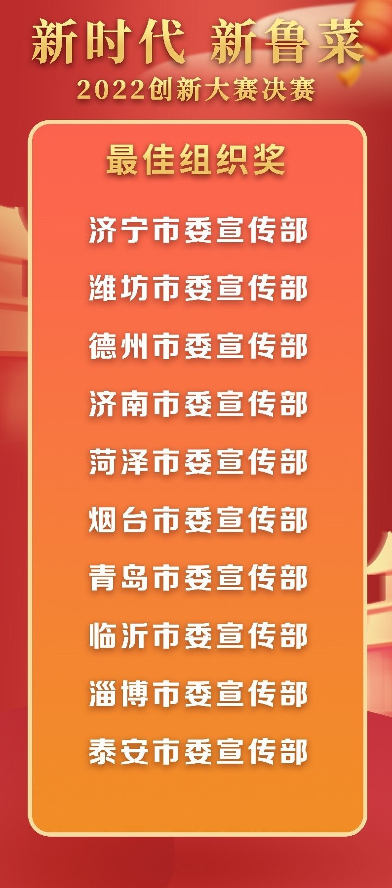 據(jù)了解,“新時代 新魯菜”2022創(chuàng)新大賽由中共山東省委宣傳部指導(dǎo),中央廣播電視總臺山東總站、央視頻、山東省商務(wù)廳、山東省文化和旅游廳、濰坊市人民政府、山東省旅游飯店協(xié)會共同主辦,中共濰坊市委宣傳部、濰坊峽山生態(tài)經(jīng)濟開發(fā)區(qū)管理委員會、央拓國際融合傳播集團有限公司、山東省烹飪協(xié)會共同承辦。經(jīng)過兩屆賽事的成功舉辦,“新時代 新魯菜”創(chuàng)新大賽已成為國內(nèi)旅游飯店行業(yè)參與人數(shù)最多、參賽范圍最廣、影響面最大的美食賽事。