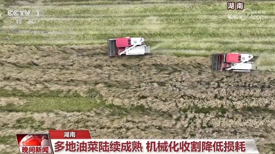 近日,湖南多地的油菜陸續(xù)進入采收期。在衡陽市衡陽縣,種植戶凌超駕駛著新型聯(lián)合收割機在田間作業(yè)。伴隨著機器的轟鳴聲,一茬茬油菜被送到機器中,油菜籽和秸稈被直接分離,打碎的秸稈從機器尾部噴撒還田。凌超告訴記者,通過全程機械化作業(yè),不僅縮短了工時,還節(jié)約了成本。